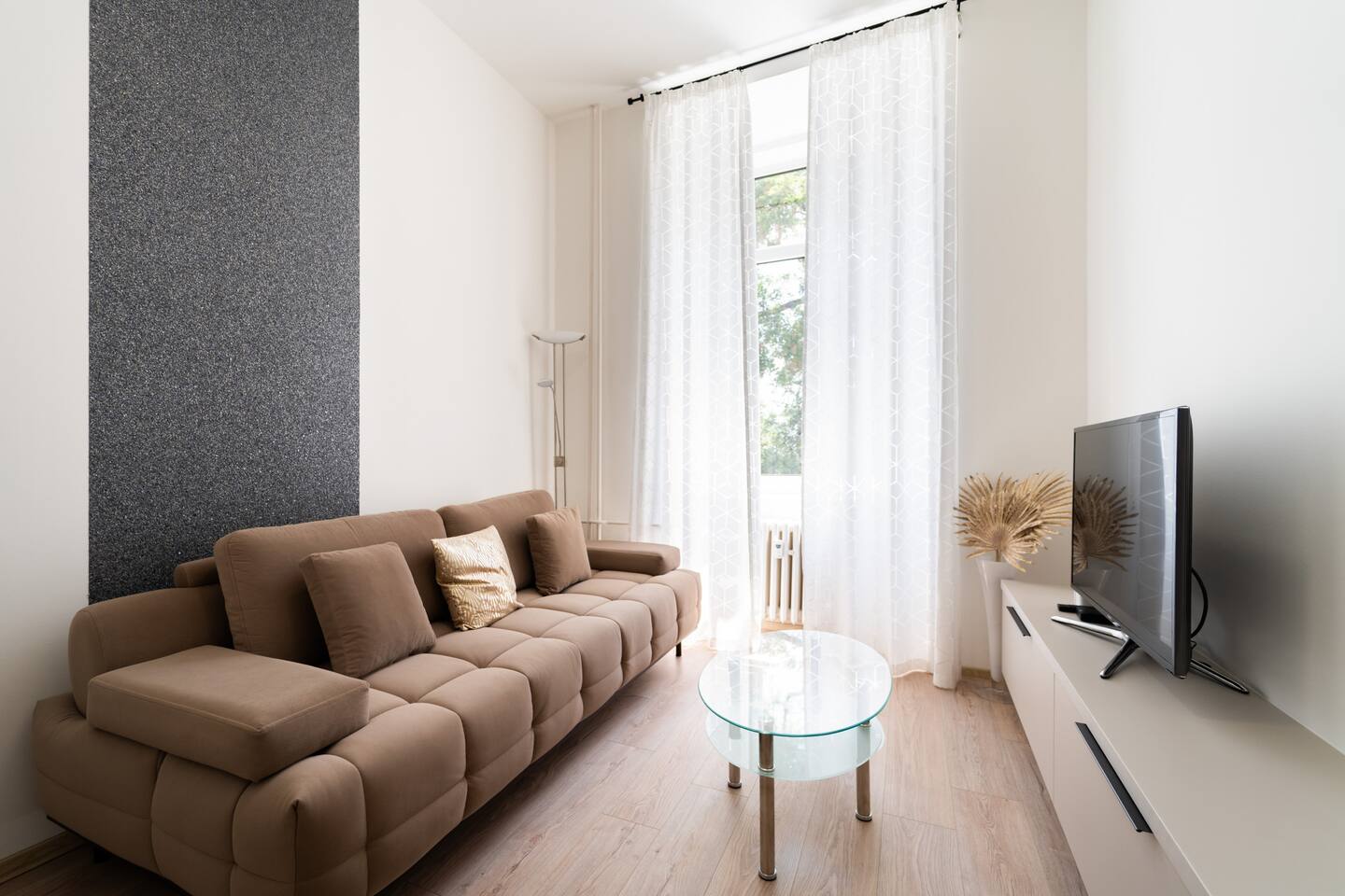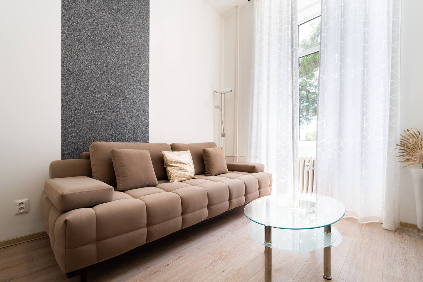 This 3-bedroom apartment is located right in the historical center of Brno, just a few steps from the main train station and the Cathedral of St. Peter and Paul. It’s an ideal choice for a family looking for stylish and comfortable accommodation in the heart of the city. Flat has two bedrooms with cozy beds and a living room with a sofa and TV. The kitchen is fully equipped, you'll find a shower and a washing machine. Thanks to the high ceilings the apartment feels spacious and peaceful.