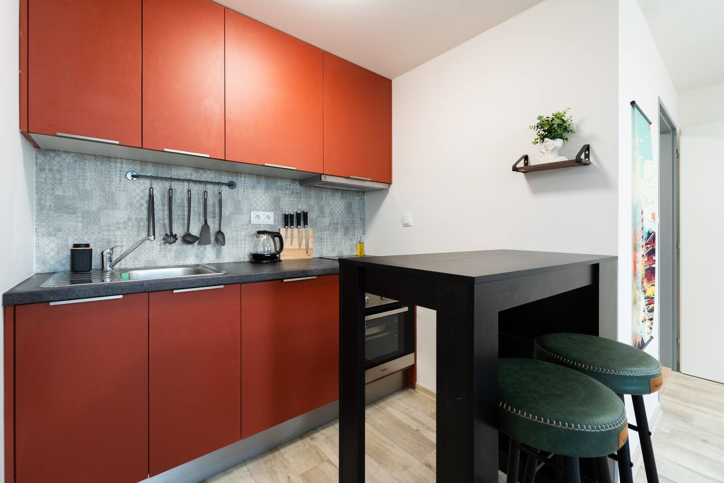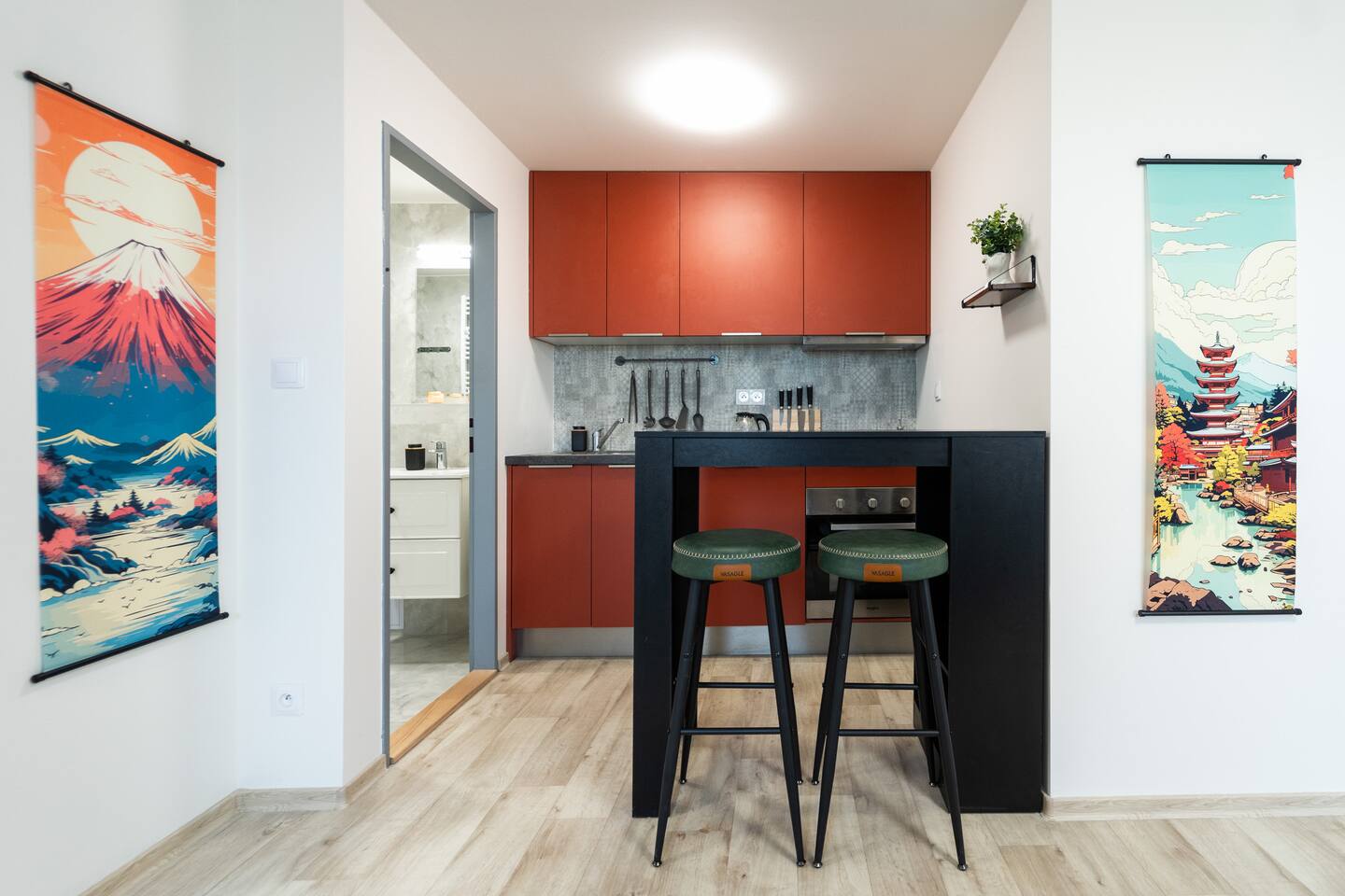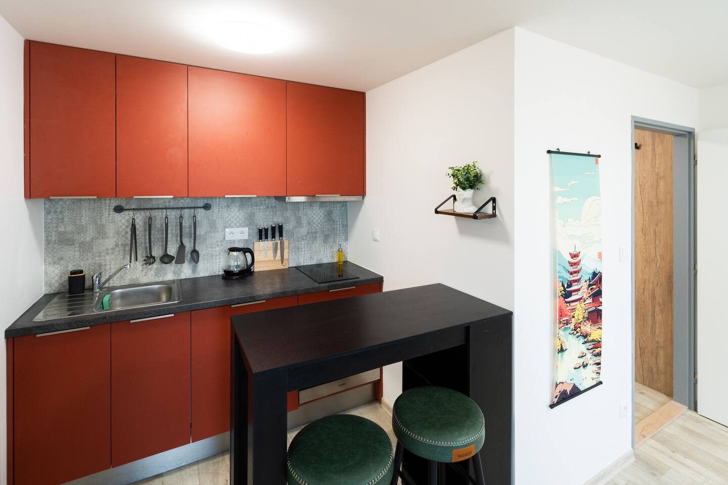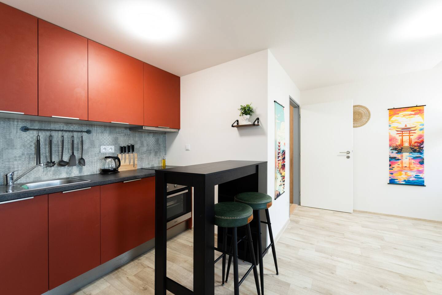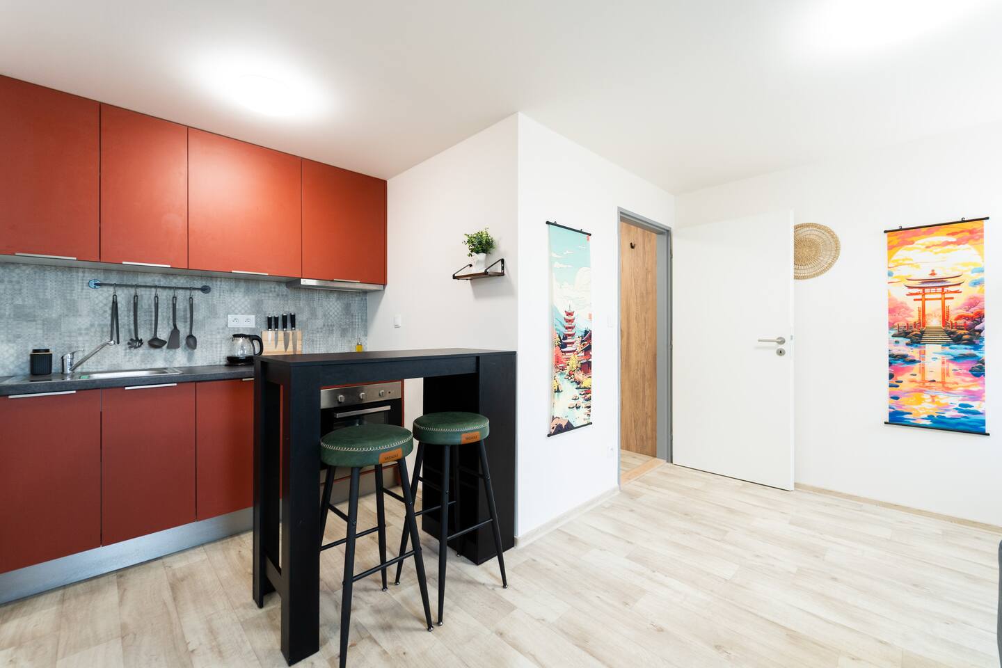 The apartment is located in the attic of a historic building. There is an elevator in the building, but you will need to take the stairs to reach the top floor. Due to its central location, the surrounding area may be lively, but the apartment’s windows are positioned to ensure maximum tranquility. Parking in Brno’s city center is limited – the apartment is on a street with restricted vehicle access. Recommended paid parking options will be provided in the information sent after booking.