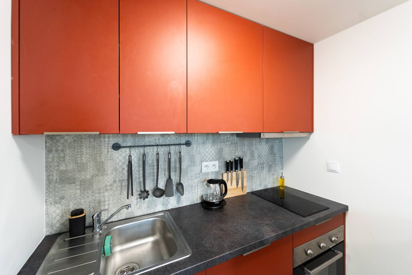 - Bedroom: comfortable double bed - Living room: sofa bed, flat-screen TV - Kitchen: fridge, oven, stovetop, dishwasher, kettle, coffee maker - Bathroom: shower, toilet, washing machine - Additional features: free WiFi, basic toiletries, towels, and linens provided